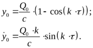 где начальные условия и определяются из состояния системы в момент времени , то есть в момент окончания действия импульса силы. Для определения этих параметров запишем: