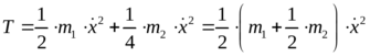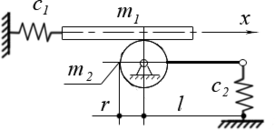 Определим кинетическую энергию системы, которая в данном случае определяется энергией поступательного движения рейки массой m1 и энергией вращения цилиндра массой m2: