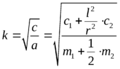 Таким образом, обобщенная масса a=JB, обобщенная жесткость c=2rl, и собственная частота колебаний: