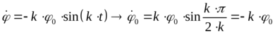 При достижении крайнего положения в отрицательной области значений обобщенной координаты, система остановится и начнет движение в противоположную сторону с положительной скоростью. Время достижения этого крайнего положения легко определяется из вышесказанного: