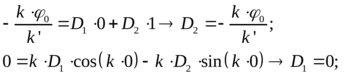 Для определения постоянных интегрирования D1 и D2 опять примем, что в момент начала третьего этапа t=0. Кроме того, из решения на предыдущем этапе можно определить начальные значения для этого этапа обобщенных координат и скорости. Очевидно, что: