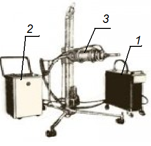 1 – блок питания, 2- блок управления, 3- излучатель (трубка).