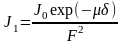 где J0 и J1 – интенсивность узкого пучка излучения, падающего и прошедшего через вещество, соответственно, при J0 на расстоянии 1 м.