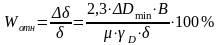 где -минимальная разность плотностей почернения различаемая глазом; В - дозовый фактор накопления; - контрастность радиографической пленки; μ – линейный коэффициент ослабления.