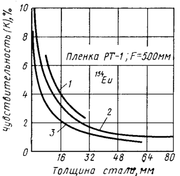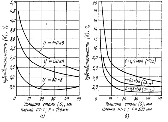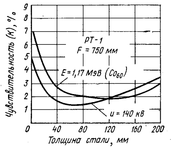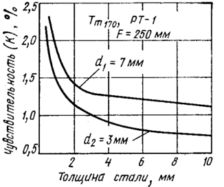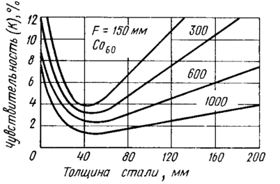 Рис. 8.7. Чувствительность при просвечивании стали -излучением