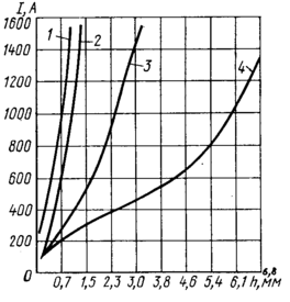 Ток в амперах, необходимый для циркулярного намагничивания пластин, определяют по формуле I = 2H(b+S), где b – ширина пластины, см; S – толщины пластины, см; Н – напряженность, А/см. Если Н = 800 А/см, то I = 1600 (b+S).