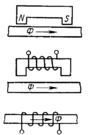 Магнитная индукционная головка представляет собой катушку (рис.10.2) на концах которой в соответствии с законом электромагнитной индукции наводится мгновенная электродвижущая сила (ЭДС). Локальный магнитный поток Фг носителя 1 через головку разветвляется на поток Фr проходящий через кольцевой сердечник 2 и взаимодействующий с обмоткой 3, и поток Фs минующий сердечник.
