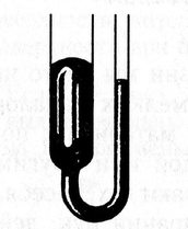 | Рис. 11.8 Уровень ртути в узкой трубке ниже, чем в широкой (для несмачивающей жидкости) | Рис. 11.9. Форма мениска: а) смачивающей жидкости; б) несмачивающей жидкости |