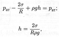 Итак, высота Н поднятия жидкости в капиллярных трубках зависит от радиуса R канала в трубке, поверхностного натяжения σ и плотности