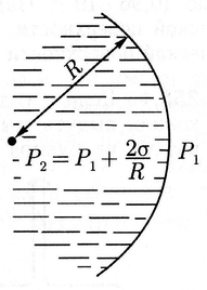 Расчет приводит к следующему выводу: при наличии сферической поверхности жидкости радиуса R имеется разность давлений