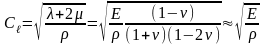 Скорости продольной и поперечной волн рассчитываются следующим образом:
