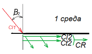 Второй критический угол является условием формирования поверхностной волны (волны Рэлея).