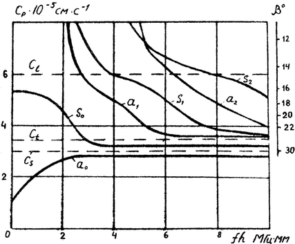 Рис.3.18. Дисперсионные кривые для волн Лэмба в твердом теле: