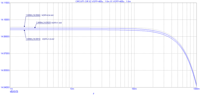 Рис. 14. Частотная характеристика выходного дифференциального сопротивления при вариации значений напряжения смещения Uсм ±60%.