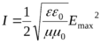 Интенсивность электромагнитной волны – физическая величина I, численно равная энергии, которую переносит волна за единицу времени через единицу площади поверхности, расположенной перпендикулярно к направлению распространения волны.