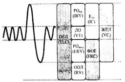 Рис. 2. Схема основных легочных объемов и емкостей.