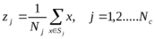 Шаг 4. Каждый центр кластера zj, j=1, 2 … Nc, локализуется и корректируется посредством приравнивания его выборочному среднему, найденному по соответствующему подмножеству Sj , т. е.
