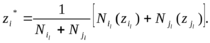 i=1, 2...L, объединяются (при условии, что в текущем цикле итерации процедура слияния не применялась ни к тому, ни к другому кластеру), причем новый центр кластера определяется по формуле