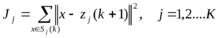 Другими словами, новые центры кластеров zj(k+1) выбираются таким образом, чтобы минимизировать показатель качества