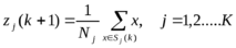 Центр zj(k+1), обеспечивающий минимизацию показателя качества, является, в сущности, выборочным средним, определенным по множеству Sj(k). Следовательно, новые центры кластеров определяются как