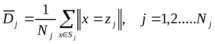 Шаг 5. Вычисляется среднее расстояние Dj между объектами, входящими в подмножество Sj, и соответствующим центром кластера по формуле