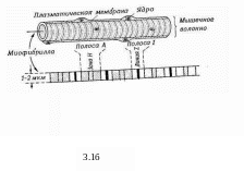Рис.3.1. Скелетные мышцы. а. Двуглавая мышца плеча; б. Миоцит и миофибрилла;