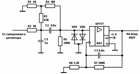 Сначала сигнал реограммы с выхода синхронного детектора поступает на ФНЧ, частота среза которого составляет