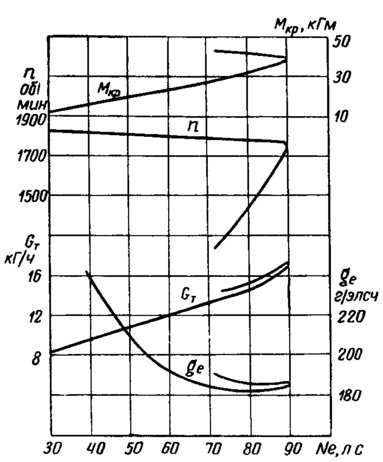 | n, об/мин | Ne, л.с. | ge, г/л.с.·час | |