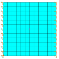 Квадратная пластина нагружена поперечной сосредоточенной силой, приложенной в ее центре. Закрепление пластины осуществляется путем заделки ее двух сторон.