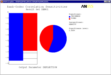 ак и следовало ожидать, получившиеся ответы показывают, что модуль Юнга (YOUNG) и толщина пластины (THICKNESS) влияют (Significant) на прогиб в центре пластины, а плотность материала (DENSITY) – не влияет (Insignificant), поскольку выполнялся статический анализ.