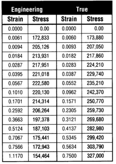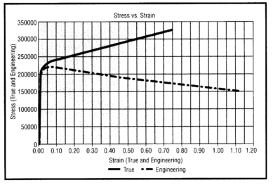 При работе с программой ANSYS, начиная с версии 5.0, требуется вводить значения напряжений и деформаций в виде истинных напряжений и деформаций. Для одномерного случая истинные деформации подсчитываются по формуле