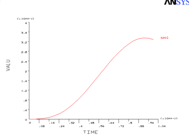 | prvar,2 | Прочитать изменение переменной с течением времени; 2 - номер переменной (смещение по оси y) | Main Menu> TimeHist PostPro> (Убедитесь, что максимальное смещение по оси y достигается в момент времени 0.092c) |