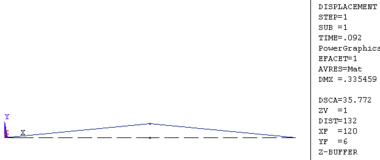 | m,2,uy | Задать преимущественную степень свободы; 2 - во втором узле; uy - разрешить, в первую очередь, смещение вдоль оси y (по вертикали) | Main Menu> Solution> Master DOFs> |