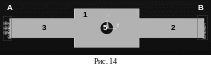 Б. Закрепляем конструкцию, как показано на рисунке 14 под буквами A и B: