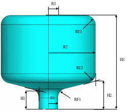 Осесимметричный корпус масляного фильтра с отверстиями в верхней и нижней частях имеет форму и размеры продольного сечения, показанные на первом рисунке.