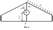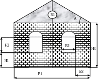 Произвести прочностной расчет (определить запас прочности) фронтона здания (см. рис. 1) р-элементным методом. На крыше лежит снег массы М кг. Толщина фронтона – D1, стены – D2. Прочность кирпича – SMAX. Плотность задать самостоятельно.