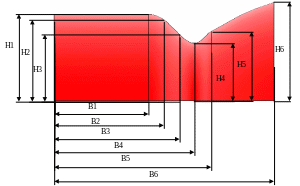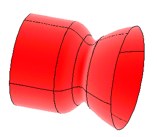 Решить задачу турбулентного адиабатического течения воздуха в осесимметричном сопле (см. рис.). Задано падение давления на выходе из сопла. Использовать сегментированные сплайны, регулярное разбиение на элементы, конкатенацию линий.