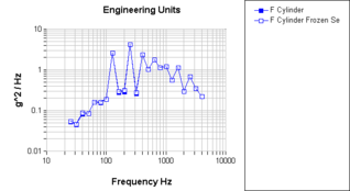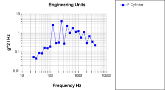 7.8 Дважды щелкнуть на поле графика и в появившемся окне отметить пункт PSD in g^2/Hz. Нажать OK. Появится график спектральной плотности виброперегрузки.