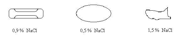 Рис.4. Изменение формы эритроцитов человека в растворах различной концентрации.