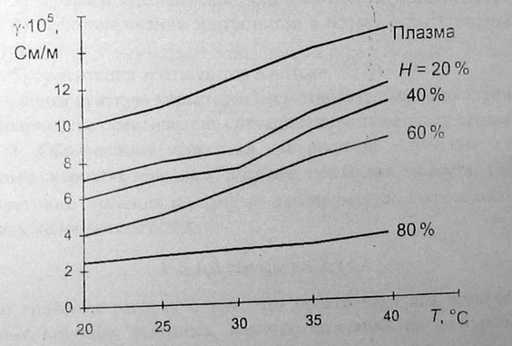 С увеличением температуры проводимость возрастает. Для более концентрированной крови эта зависимость менее выражена. С увеличением температуры эритроциты принимают более сферическую форму, и при
