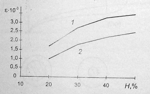 Рис.3. Влияние формы эритроцитов на диэлектрическую проницаемость суспензии эритроцитов в физиологическом растворе