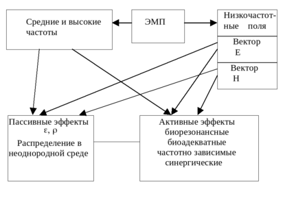По различию реакций живых систем на параметры ЭМП, эффекты взаимодействия принято классифицировать следующим образом: