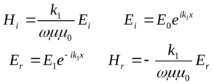 Тогда из уравнений (3.4) имеем выражения для комплексных амплитуд поля в падающей Ei, Hi и отраженной Er, Hr волн в первой среде (из которой распространяется волна):