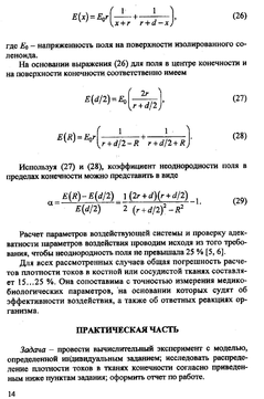 Учитывая, что одним из важных механизмом действия ЭМП на биообъекты является взаимодействие электрических токов с биотканями, рассмотрим наиболее часто встречающиеся задачи, встречающиеся при разработке методов электрофизического воздействия на организм.