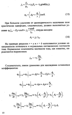 При большом удалении от цилиндрического включения поле практически однородное, следовательно должно выполняться условие
