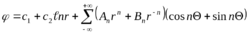 Учитывая, что решение (2.23) должно иметь период равный 2 и принимая потенциал в центре равным нулю, получаем выражение для потенциала внутренней области в виде