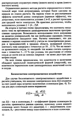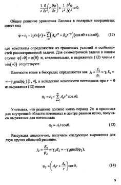 Тогда алгоритм оценки индуцированных в объекте токов сводится к следующим этапам: зная параметры внешнего поля и геометрические характеристики объекта, решается уравнение Лапласа, которое даёт распределение потенциалов внутри и на поверхности объекта. Затем, исходя из граничных условий, определяется распределение поверхностной плотности зарядов, после чего оценивается плотность тока в приповерхностных и более глубоких слоях биоткани (если имеются неоднородные по проводимости включения необходимо учитывать деформирование линий тока).
