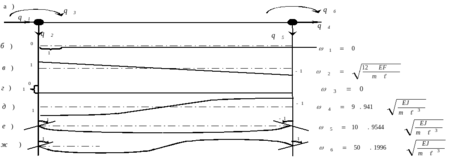 Формы колебаний опертого стержня