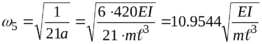 Определим формы колебаний для полученных частот (т.е. вектор перемещений). Для этого в уравнение (45) подставим уравнение (46) при