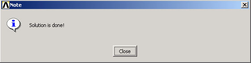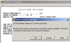 | Рисунок 17. Подтверждение запуска решения Рисунок 18. Решение завершено | Main Menu > Solution > Solve > Current LS При запуске решения ANSYS выдает окно статуса, в котором приводит краткую характеристику задачи. Также выводится диалоговое окно (Рисунок 17) для подтверждения запуска решения. Нажмите ОК. После завершения решения будет выведено окно с сообщением "Solution is done!". Нажмите Close. Закройте окно статуса.